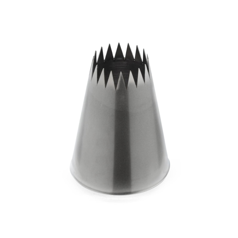 Тип: насадка; Вид: трубочка зубчатая; Диаметр отверстия, мм: 18; Диаметр основания, мм: 35; Высота, мм: 50; Материал: нерж. сталь; Особенности: для помадки, мелкие зубчики;