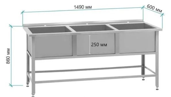 Ванна моечная ВМСб - 530/3 "Base", полка с 3-мя отверстиями, борт